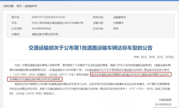 但是,在2017、2018年,交通部陸續發布了營運客車、營運貨車的安全技術標準,因此就將燃油公告改為了現在的“道路運輸車輛達標車型”,不過一開始只針對客車、牽引車、載貨車。