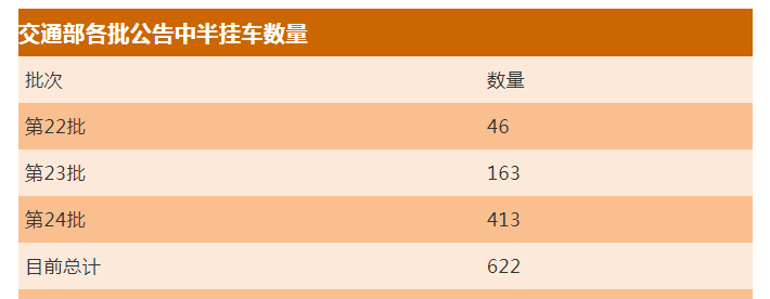 隨后,疫情影響逐漸減弱,各家企業將主要精力都投入到了去庫存當中。從交通部每月公布的信息中我們可以查到,一直到7月31日的第22批《道路運輸車輛達標車型表》中才有半掛車出現,數量也只有46款。