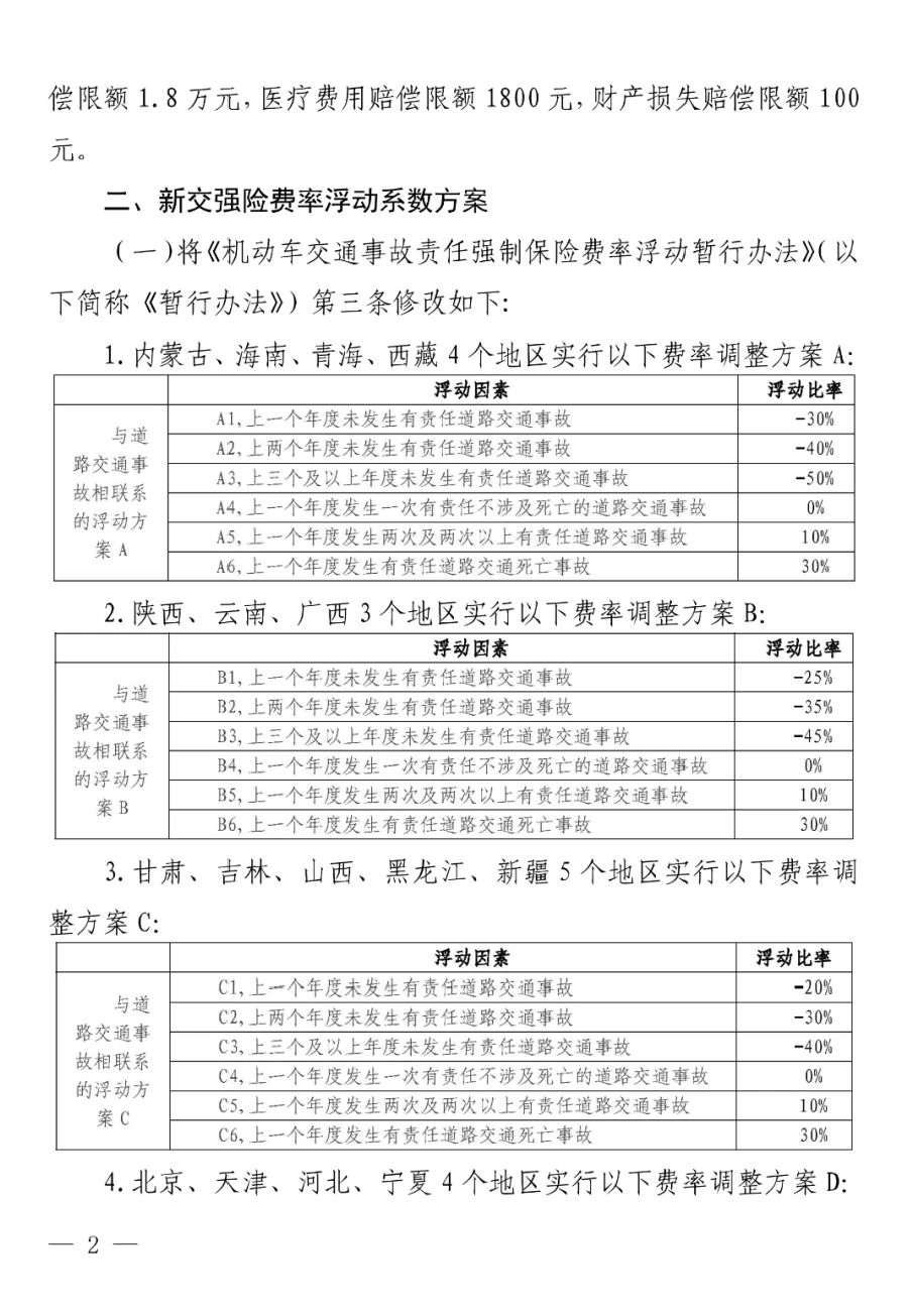 新的費率浮動系數方案由原來的1類細分為5類,浮動比率中的上限保持30%不變,下浮由原來很低的-30%擴大至-50%,提高對未發生賠付消費者的費率優惠幅度。