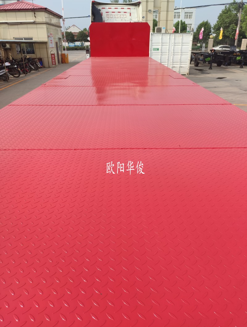 華俊大紅顏色醒目,也是主流色,顏色搭配和諧。掛車經過前處理打磨,再經過自動噴砂,除去掛車鐵銹,增強油漆的附著力,防銹能力,保證其成色,保持靚麗外衣。