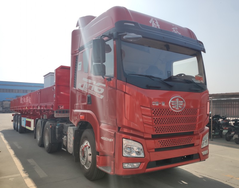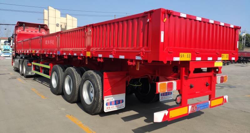側翻自卸半掛車:可有效地提高裝卸機運輸散裝零散貨物的運輸效率,自卸式半掛車適用于煤炭、礦石、泥沙、建筑物料等散裝零散貨物的運輸。