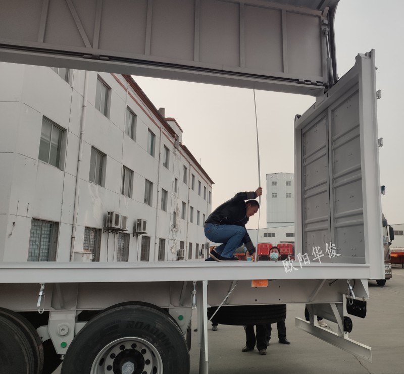 發布日期:2020-12-26 09:29:37 編輯:歐陽華俊 瀏覽量:1821隨著我國物流行業的快速發展,翼開啟廂式車、飛翼半掛車以其方便快捷的裝卸方式,越來越受到客戶的青睞,武漢某物流公司王總實地考察全國多個掛車廠家,很終選擇了歐陽華俊,經過耐心等待,王總的13.75米直梁飛翼半掛如期完工提車大吉,奔赴財富大道!