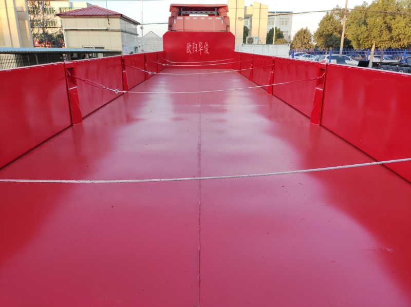 墻板高60公分,使用高強平面板,不易漲箱。該車為左右可翻,也可設計一邊側翻,根據需要定制。防護網為鋁合金材質,按很長要求生產安裝。