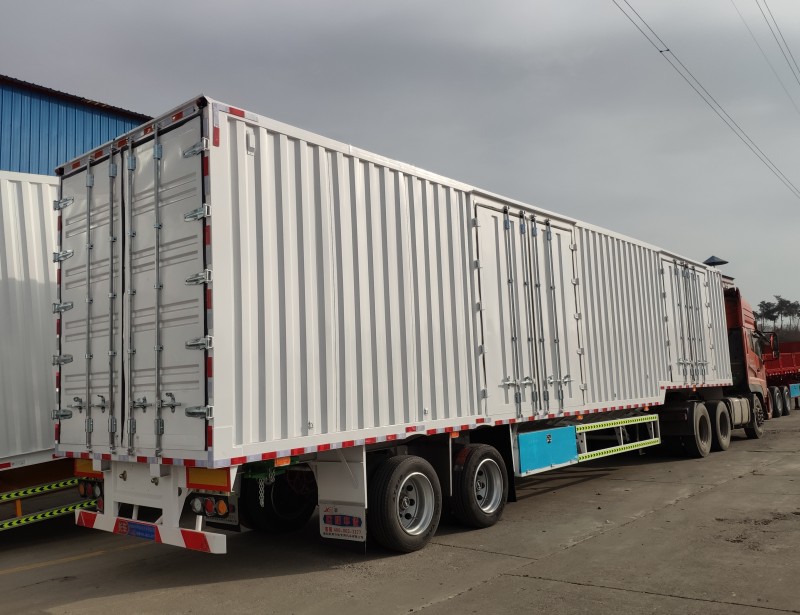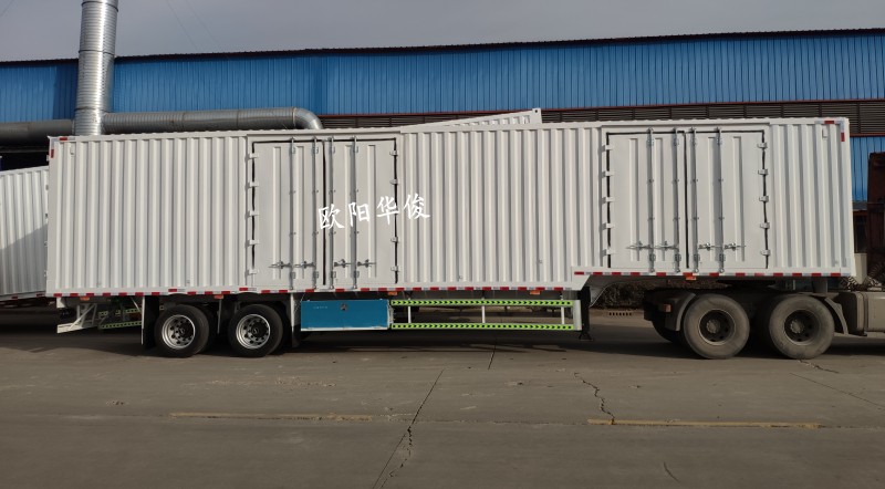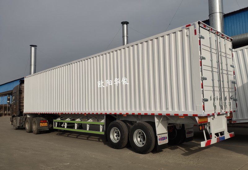 廂式半掛車主要適用于家用電器、輕紡貨物、煤炭、沙石等建筑材料以及圖盤貨物的運輸。歐陽華俊生產(chǎn)的廂式半掛承載力強,安全系數(shù)高、設(shè)計合理、堅固耐用,工藝制造先進,是您的不二之選!