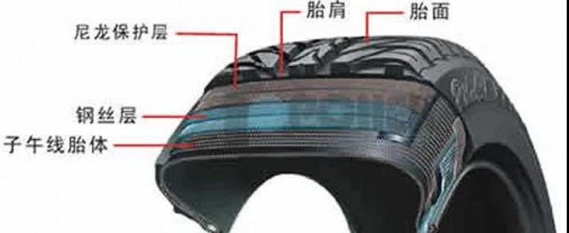 可見,真空輪胎并不是簡單地去掉內(nèi)胎,而應(yīng)該理解為外胎兼有傳統(tǒng)內(nèi)胎的作用。真空胎的結(jié)構(gòu)組成主要為外胎,外胎從外到內(nèi)主要是外胎面、簾布層、胎體。