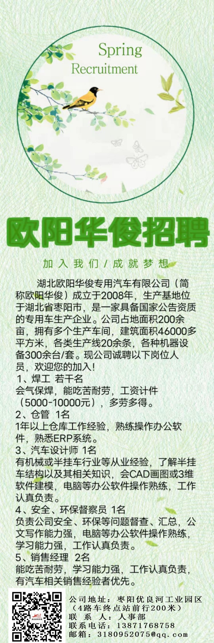 湖北歐陽華俊專用汽車有限公司2021年很新企業招聘信息,歡迎您的加入!
