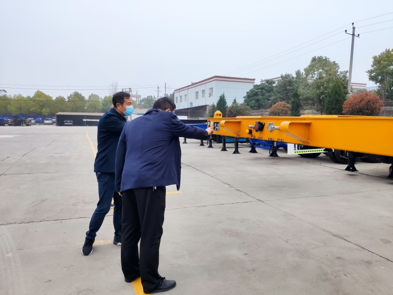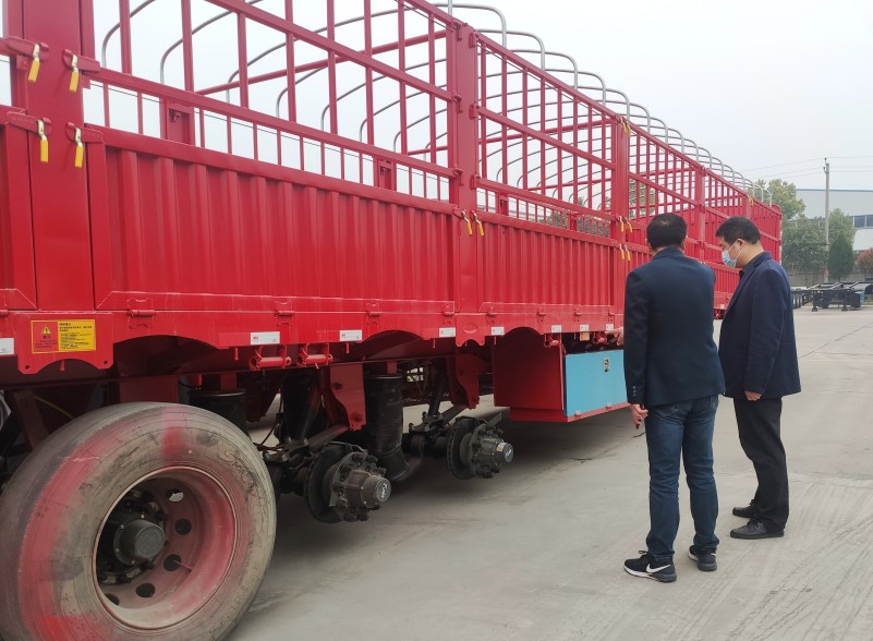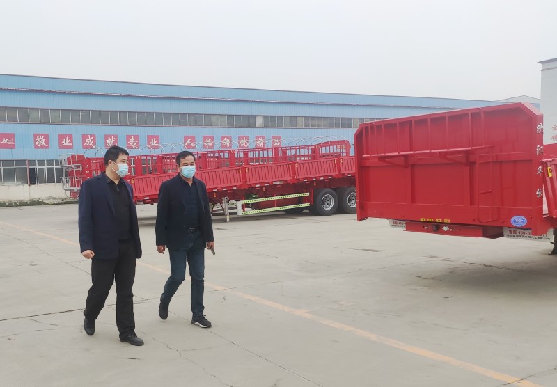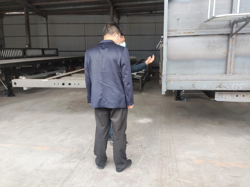 楊局長了解半掛車生產(chǎn)工藝,對半掛車品質(zhì)給予肯定。