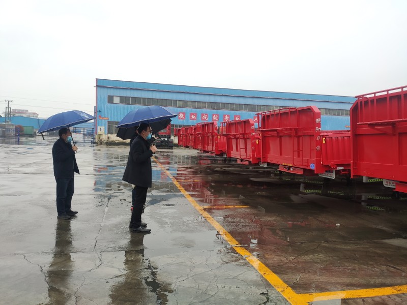 歐總陪同馬局長等領導講解各款成品半掛車,領導詢問了各款半掛車銷量和歐陽華俊掛車的品質細節。