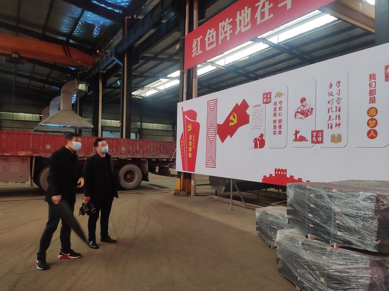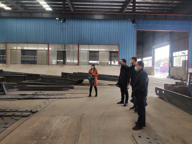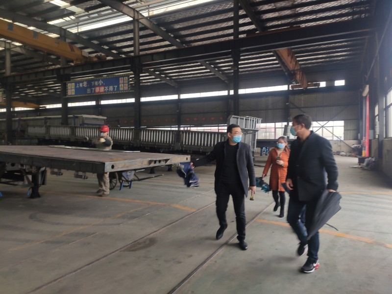 參觀1號車間,歐總向馬局長介紹了掛車上裝生產工藝細節。