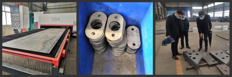 參觀2號材料車間,歐總向馬局長介紹了歐陽華俊新購入的百萬激光切割設備制作的部件。