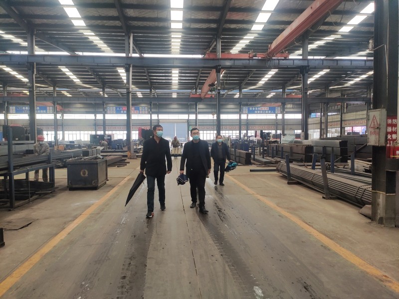 參觀大梁生產過程,歐總介紹工藝細節。