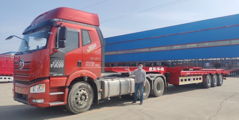 發布日期:2021-03-30 03:25:04 編輯:歐陽華俊 瀏覽量:2215由于GB7258政策出臺倉欄、欄板購車成本上升,17.5米平板半掛車也走向末路,13.75米成為長途運輸中優先考慮車型,歐陽華俊每天都陸陸續續發車十余臺平板,小編偶遇河南付老板,和付老板交談中了解,卡友還是比較信賴歐陽華俊掛車品質,并對自己的愛車非常滿意!