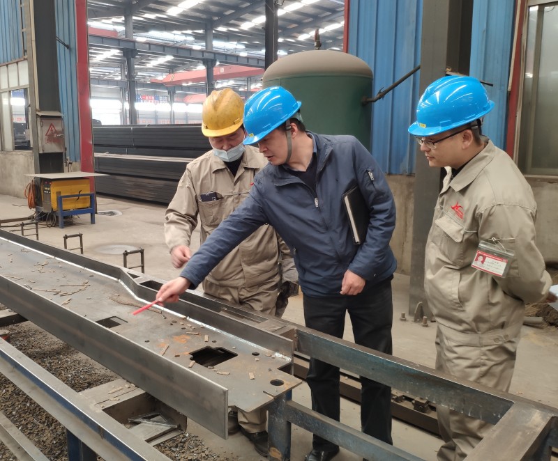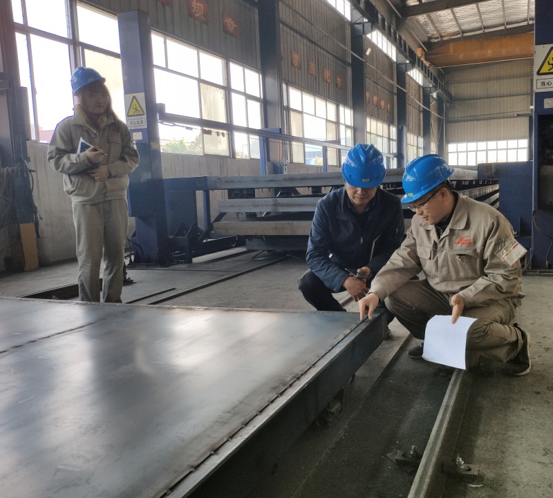 技術質量部楊主任與嚴教授交流墻板自動焊接工藝