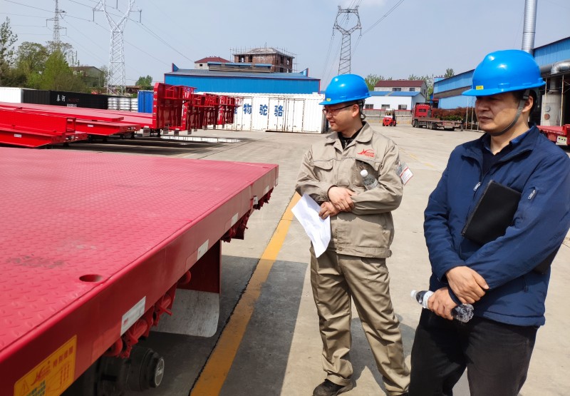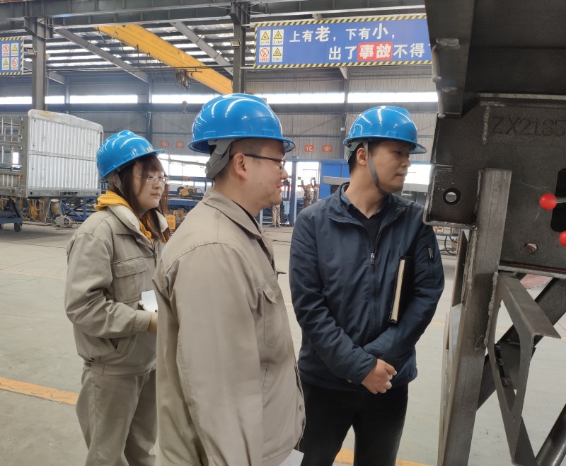 嚴教授來到我司的生產車間進行現場調研,了解生產工序,并且觀摩了半掛車的生產過程。