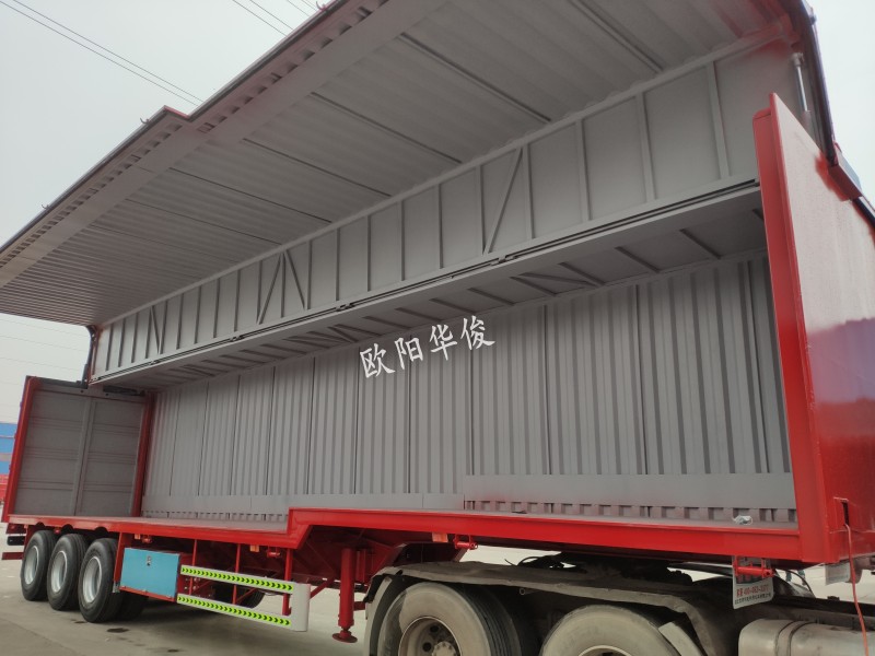 對翼開啟廂式半掛,歐陽華俊還可定制生產12米、12.5米、13米、13.58米等不同長度規格,所做車型均有公告資質,可上戶。歡迎廣大新老客戶來廠考察洽談~