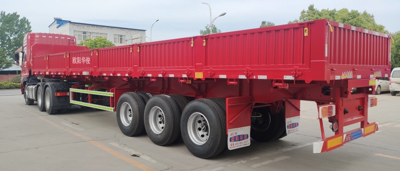 側翻自卸大概配置如下:外觀尺寸13米長×2.55米寬×0.6米墻板高。左右可側翻,上下可開,多種打開裝卸方式,充分發揮側翻自卸優勢,合理滿足不同運輸要求,提高裝卸貨物的多樣性,簡單、實用。