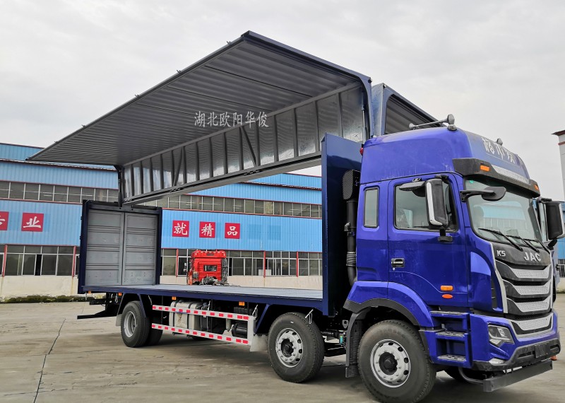 發布日期:2021-06-02 05:27:06 編輯:歐陽華俊 瀏覽量:1823飛翼車,又叫翼開啟廂式車,是普通廂式車的改進,通過手動液壓裝置,能開啟車廂兩側翼板的專用車輛,由于其具有裝卸速度快,效率高,可側面裝卸等優點,已經是現代物流企業十分青睞的運輸工具。