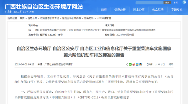 除此之外,廣西也在近日發(fā)布通告表示,將國五車上牌延遲到2021年12月31日。