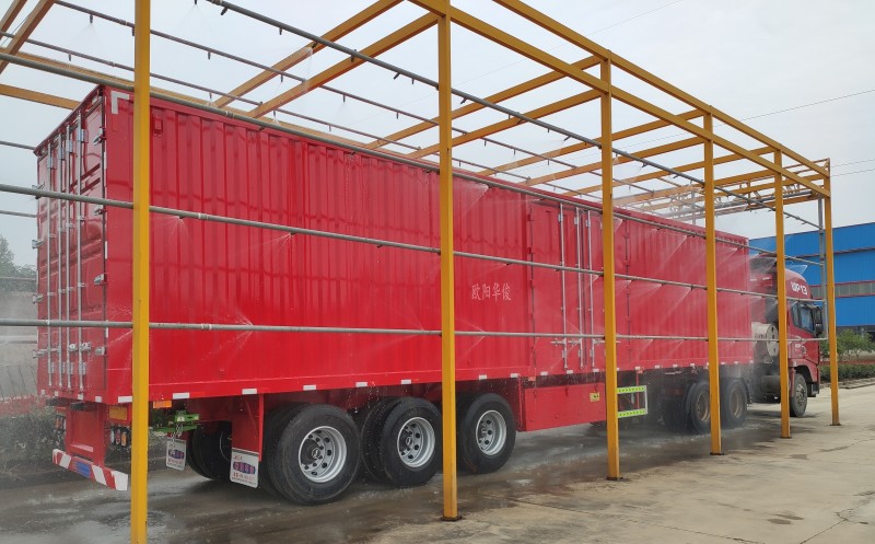 常年跑車難免遇到暴雨天氣。大家對(duì)廂式系列半掛車是否漏水的問題特別關(guān)心,為了讓大家放心廂式系列半掛車的防水效果,歐陽(yáng)華俊生產(chǎn)的所有廂式系列半掛車由質(zhì)檢部檢驗(yàn)測(cè)試是否漏水,每排噴頭全開,模擬中雨、大雨、暴雨的情況對(duì)廂體進(jìn)行噴淋。淋水試驗(yàn)完成后,車廂內(nèi)部干干凈凈,沒有任何水點(diǎn)痕跡。