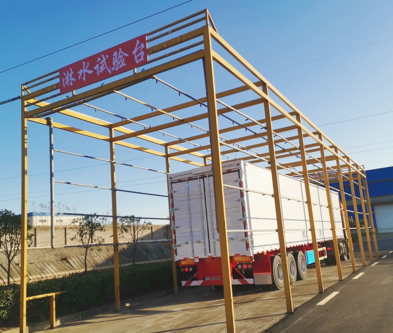 主要負責油漆噴涂、水電氣路安裝、輪胎車橋安裝等工作。我們引進了兩套自動噴砂設備,經噴砂后的掛車,油漆涂層飽滿、均勻、光滑、無死角,附著力、耐腐、滲透性能都是其它傳統涂裝工藝無法比擬的。我們的油漆房也是完全符合國家環保標準的,廢水經過環保處理后可循環利用。此外,我們2016年自主研發設計了淋水試驗臺,徹底解決了集裝箱漏水問題,獲得了國家知識產權局專利證書。