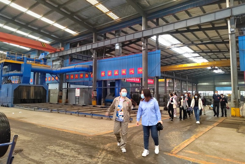 各人大代表領導們視察1號車間生產狀況,了解了1號車間是各種車廂的上裝焊接車間及車廂墻板自動化焊接與自動噴砂設備。