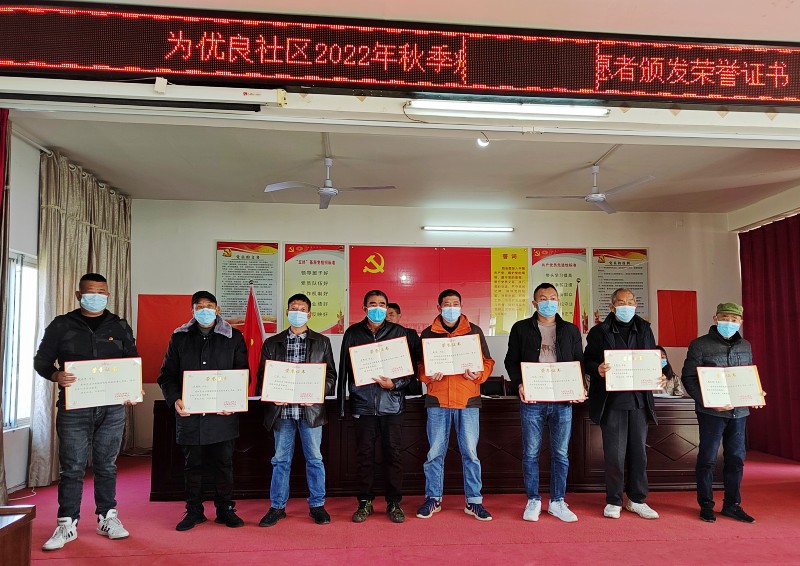 王書記就共同締造優良社區美麗家園,提高居民幸福指數、疫情防控、農田旱改水和鄉村振興等方面的工作做了全面安排和部署,并為社區11名疫情防控志愿者頒發了聘書。