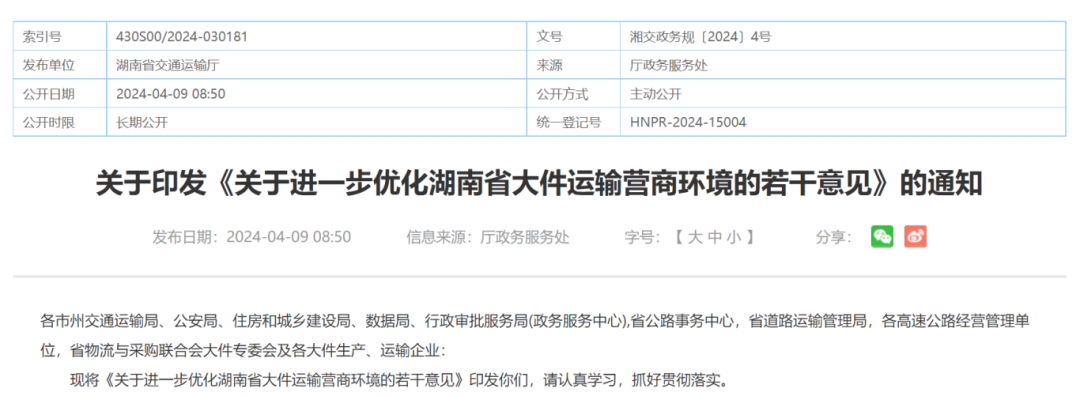 發(fā)布日期:2024-04-12 03:38:11 編輯:歐陽華俊 瀏覽量:1362日前,湖南省交通運輸廳聯(lián)合省公安廳、省住房和城鄉(xiāng)建設(shè)廳、省數(shù)據(jù)局在全國率先出臺了《關(guān)于進(jìn)一步優(yōu)化湖南省大件運輸營商環(huán)境的若干意見》。破解了企業(yè)和群眾重點關(guān)注的“空車上不了高速”“實際裝載與申報數(shù)值存在細(xì)微偏差的大件運輸車不放行”等問題。