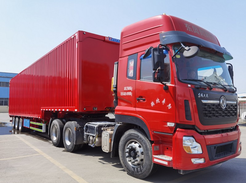 飛翼車廂外部尺寸為:13.75米長*2.55米寬*4米總離地高,高低板設計,更大程度增加內部尺寸,出廠前進行試飛及淋雨試驗,翼開啟廂式半掛車快遞物流助力軍,省時省力,運輸利器。