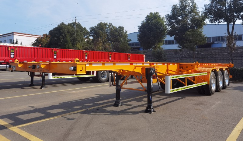 有20英尺、40英尺、45英尺兩軸或三軸危險品骨架半掛車,不同長度,滿足你的裝貨需求~