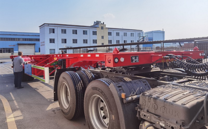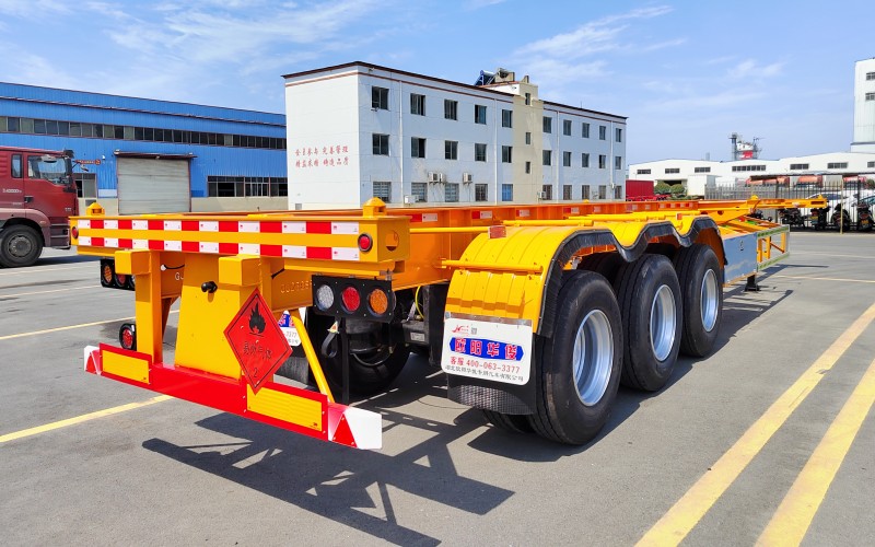 有20英尺、40英尺、45英尺兩軸或三軸危險品骨架半掛車,不同長度,滿足你的裝貨需求~