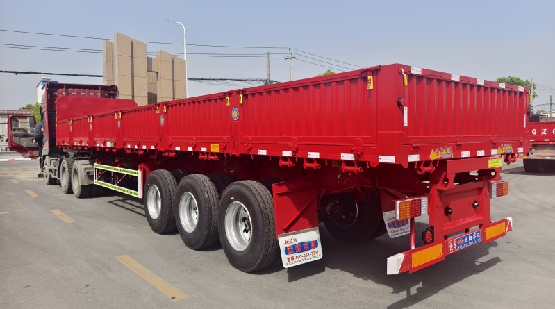 13米不銹鋼材料的側翻自卸半掛車發車啦