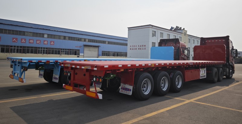 歐陽華俊生產的13米平板半掛車,底架結構多樣化,可滿足不同客戶的拉貨需求,解鎖N多種運輸場景。