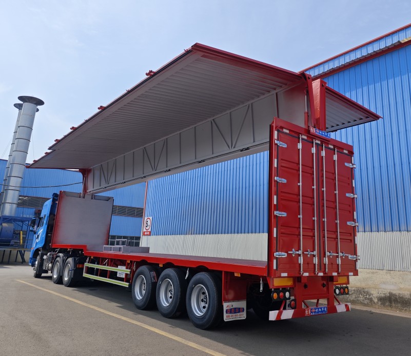 飛翼半掛車(chē)尺寸:13.75米長(zhǎng)×2.55米寬×4米離地高