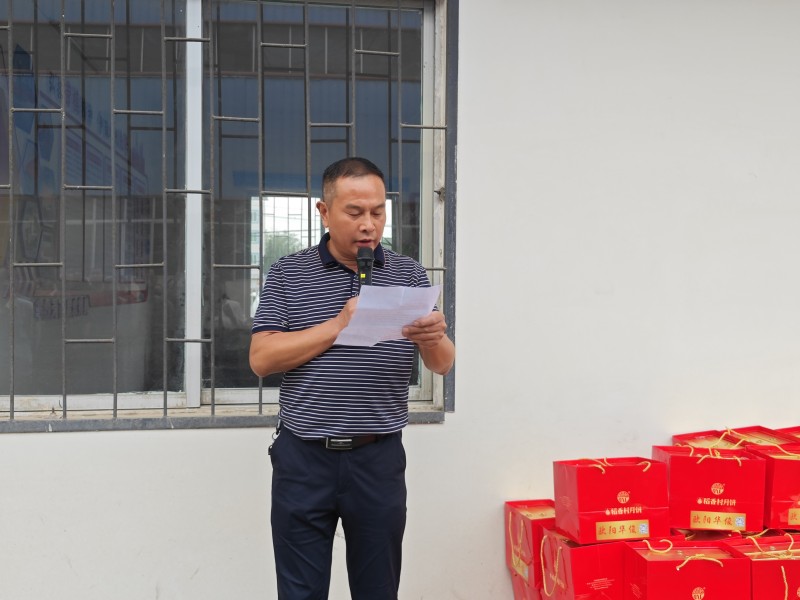 發放現場,歐陽華俊總經理歐陽德保致辭,并親自為員工遞上中秋禮品。一份份禮物,傳遞著公司對員工的關懷和支持;一句句問候,凝聚著公司對員工的真情和掛念。