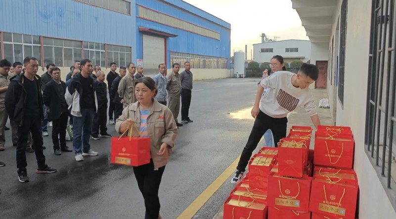 值此中秋佳節來臨之際,為表達對全體員工的關愛之情,感謝大家的辛勤付出,今日,湖北歐陽華俊為全體員工發放了精心準備的中秋福利,并送上濃濃的節日祝福和深切關懷。
