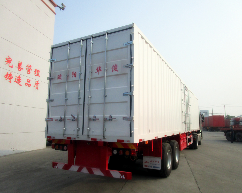 廂式半掛車車廂頂部封閉,不可開啟,僅限高等級公路上使用;廂頂有封閉式、推拉開啟式、敞開式、敞口代篷布桿式等,操作方便,滿足用戶多樣化,個性化要求。