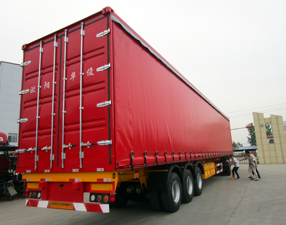 廂式半掛車車廂頂部封閉,不可開啟,僅限高等級公路上使用;廂頂有封閉式、推拉開啟式、敞開式、敞口代篷布桿式等,操作方便,滿足用戶多樣化,個性化要求。
