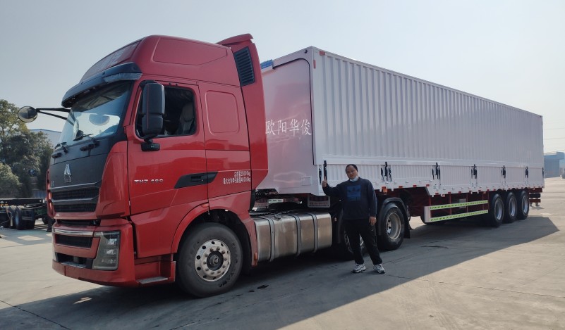 隨著我國物流行業的快速發展,翼開啟廂式車、飛翼半掛車以其方便快捷的裝卸方式,越來越受到客戶的青睞,武漢某物流公司王總實地考察全國多個掛車廠家,很終選擇了歐陽華俊,經過耐心等待,王總的13.75米直梁飛翼半掛如期完工提車大吉,奔赴財富大道!