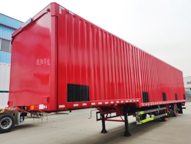 近日,歐陽華俊13.75米2軸廂式半掛,直梁和高低板樣式均經過淋水試驗臺檢驗合格,完工啦! 廂式半掛車主要適用于家用電器、輕紡貨物、煤炭、沙石等建筑材料以及圖盤貨物的運輸。歐陽華俊生產的廂式半掛承載力強,安全系數高、設計合理、堅固耐用,工藝制造先進,是您的不二之選!