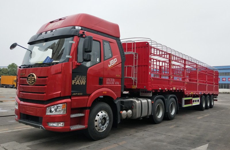 秋天到了,天氣變涼了,初秋的風使人感到涼爽舒適,許多的樹林都在秋天變成了果園,秋天是個收獲的季節,歐陽華俊廠區也是一片繁忙的景象,五湖四海的朋友來廠提車,絡繹不絕,這不小編隨便去轉轉就看到兩臺解放J6P 550馬力領航版牽引車頭配歐陽華俊13米高欄即將離廠,奔赴財富大道!