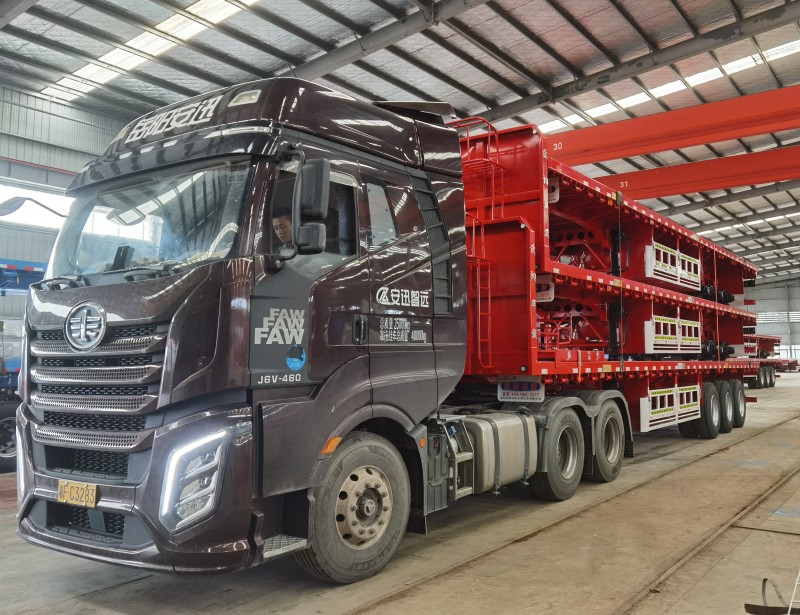 自2020年1月1日起,三軸的倉柵半掛車和欄板半掛車須配備盤剎,平板式運輸半掛車不在整改范圍內,所以還可以使用鼓剎橋。5臺13米直梁平板半掛車齊發車,提車大吉!感謝老板們的支持,祝大家一路平安,財源廣進! 歐陽華俊憑借過硬的產品品質和優秀的