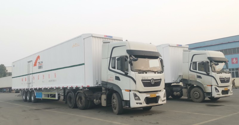 武漢某物流公司在湖北歐陽華俊訂購的30臺13.95米三軸骨架半掛車配16.5米長飛翼車廂上裝,在廠區成為了一道靚麗的風景!感謝老鐵們對歐陽華俊的大力支持,祝大家在新的一年里好運連連,財源廣進,一路平安! 湖北歐陽華俊生產的飛翼半