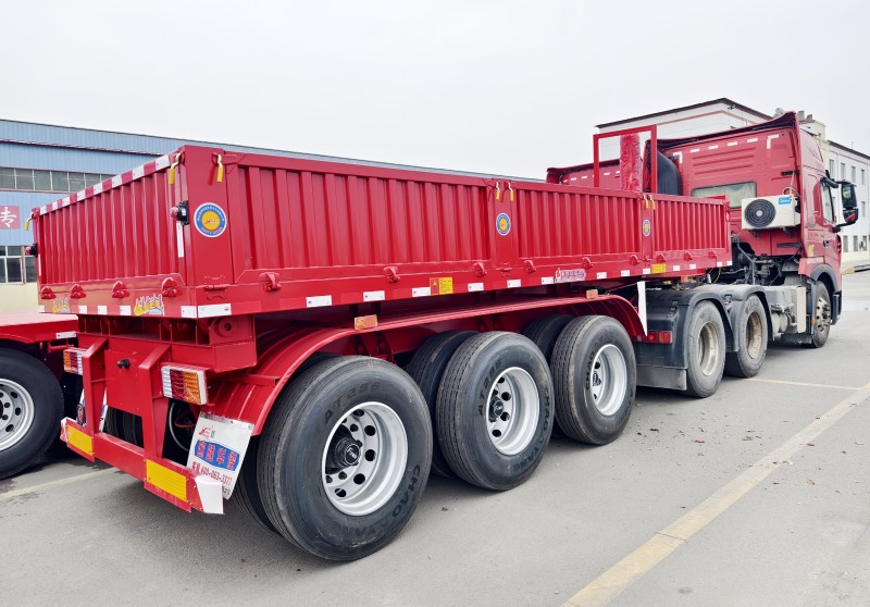 金秋十月,碩果累累,在這收獲的季節里,歐陽華俊廠區也是一片熱火朝天的忙碌景象!10余臺出口側翻自卸半掛車依次通過客戶檢驗后,批量發往海外。 整車出口,整裝待發 掛車工藝精湛、質量可靠、外型靚麗。國外采購商信賴歐陽華
