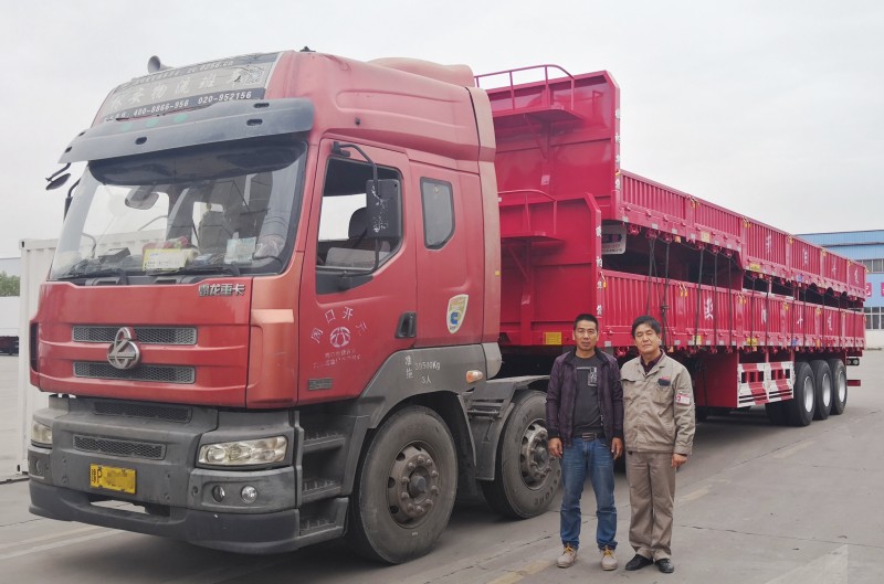 交車喜報!河南姚老板的2臺13米欄板半掛車背車提車大吉 2018-10-25