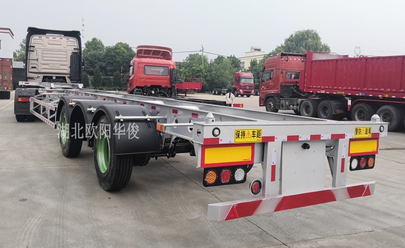 銷量火爆,9月熱銷車型!歐陽華俊輕量化骨架半掛車采用高強鋼材設計制作,45英尺(13.95米長)3軸骨架半掛車自重在4.6噸-4.8噸左右(根據鎖座數量不同,重量有所差異),2017年秋季開始制作這款輕型骨架半掛車,老客戶訂做后通過將近一年多的反復使用,質量得到認可。所以,老客戶們幫忙介紹了很