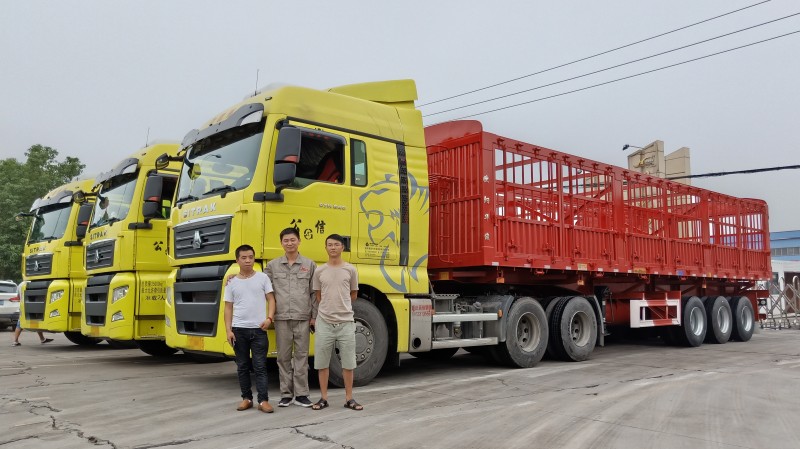 立秋后,天氣還是那么熱,每天來公司提車的朋友們,感恩有您的一路陪伴!兩臺一模一樣的13米輕型高低板倉柵半掛車,停在廠區內格外亮眼,配東風天龍旗艦牽引車頭,漂亮!感謝河南朋友對歐陽華俊掛車廠的關注和支持,祝牛老板和朱老板提車大吉!生意興隆、萬事順意! 祝親們提車大吉,馬達一響,黃金