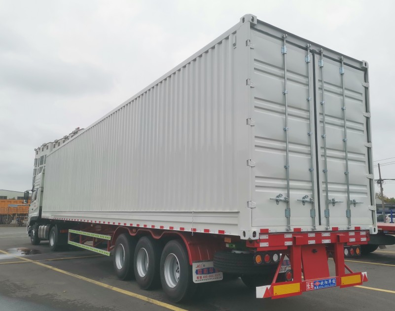01 湖北歐陽(yáng)華俊廂式系列半掛車產(chǎn)品,安全系數(shù)高,設(shè)計(jì)合理,堅(jiān)固耐用,外觀美觀,工藝制造先進(jìn)。廂式半掛車系列產(chǎn)品比較適應(yīng)于快遞快運(yùn)、散貨物流、家電、百貨等行業(yè)。具有承載能力強(qiáng),容積大的特點(diǎn),骨架式廂式半掛車最大可以做到130方大空間。