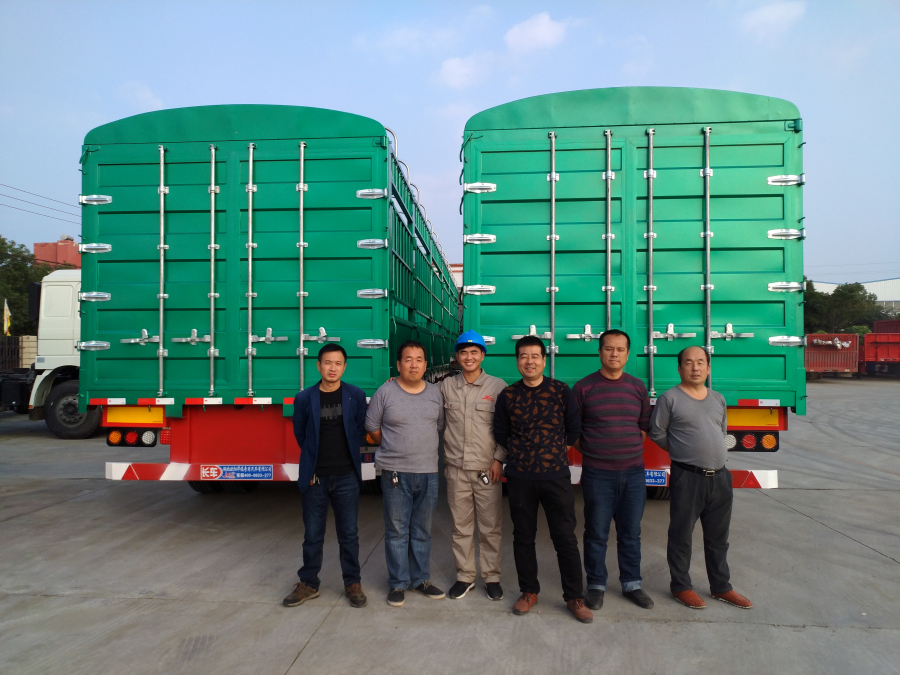 繼今年9月份歐陽華俊推出超輕型倉欄后訂單火爆,很多客戶強烈咨詢超輕型欄板何時能一見真容,眾人翹首以盼,今天超輕型欄板正式閃亮登場啦--5.6噸的欄板半掛車,看荊州趙總一行人與我們銷售經(jīng)理合影的表情,滿意寫在臉上! 歐陽華俊超輕型欄板半掛