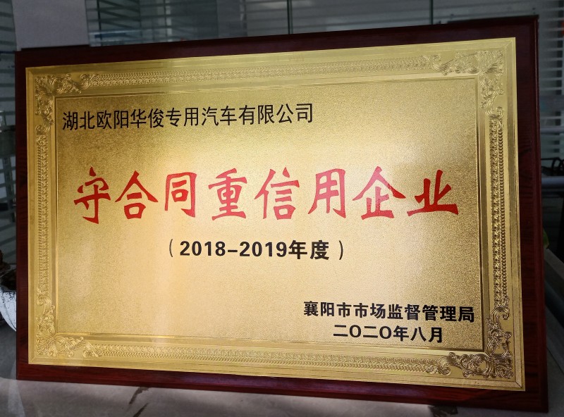 點贊!湖北歐陽華俊專用汽車有限公司榮獲“守合同重信用”企業稱號 2020-11-19