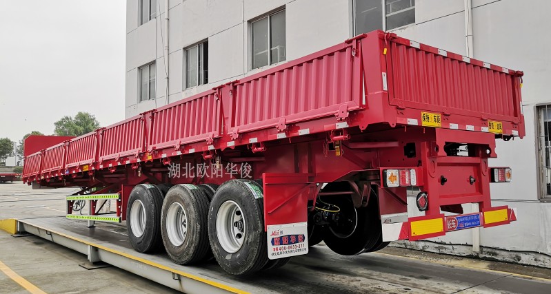 好消息:歐陽華俊全新輕型側(cè)翻自卸半掛車隆重上市啦,自重6.76噸左右,整車過磅時配置為:裝的是廣東正宗富華車橋,普通的輪胎鋼圈,帶有一個2米長的鍍鋅水箱,鵝頸大梁處裝有1個液壓油箱。車廂尺寸:13米長*2.55米寬*60公分高。 此款自卸車由老客戶們提前訂做,提車?yán)浽囉煤螅|(zhì)量